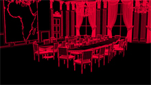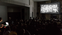 Die Künstlerin Ceren Oykut lässt aus minimalen Strichzeichnungen komplexe Wesen, Landschaftszeichnungen, oder Stadtelemente entstehen und projiziert diese in die Bar Babette.