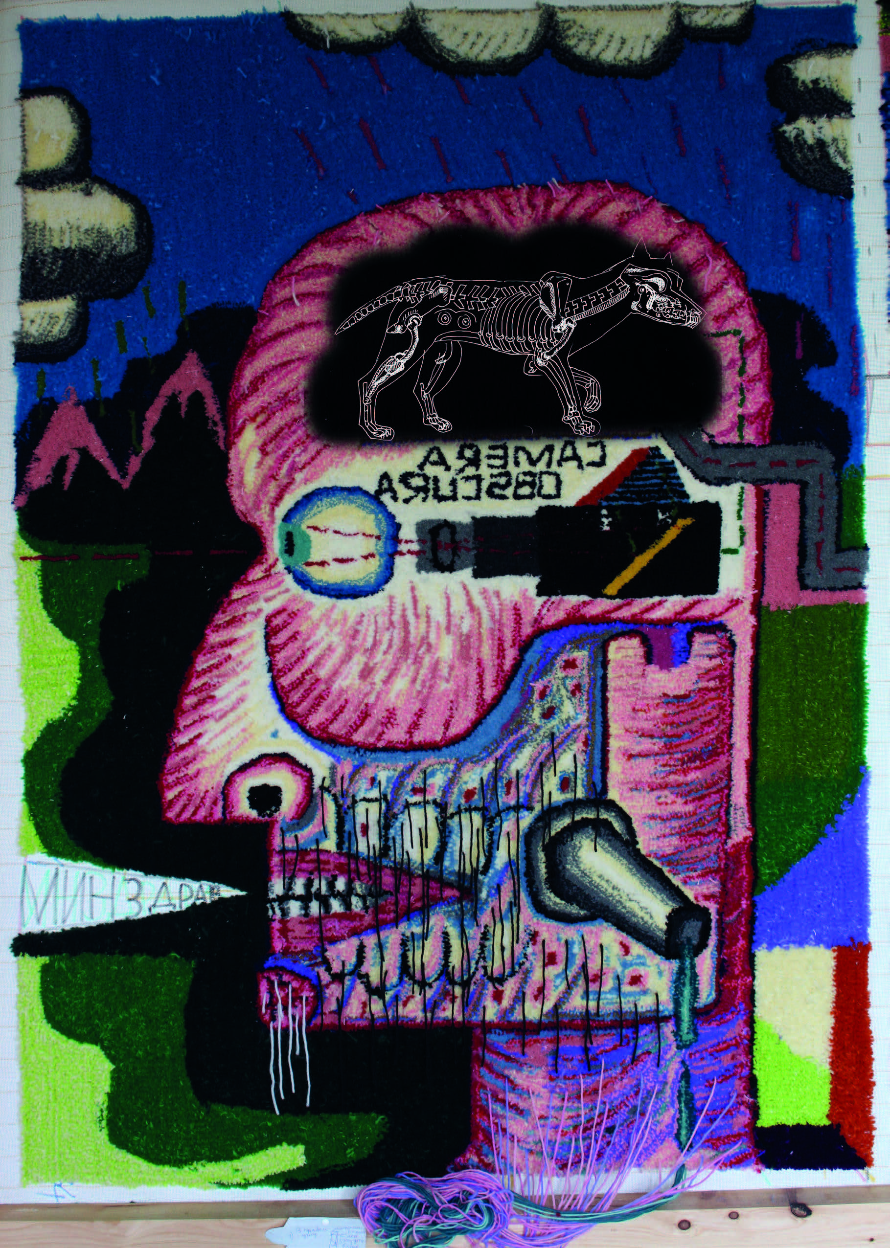 The artist Murat Haschu is at home in several disciplines and combines graphics, painting, textile art, animation and video. He is creating a kind of graffiti wall with image and text messages out of tufted tapestries and an animation in black and white. Current political topics such as climate change or media overload are dealt with in a subtly ironic way. Murat Haschu points us to the choice between head cinema and the Way of the Samurai.