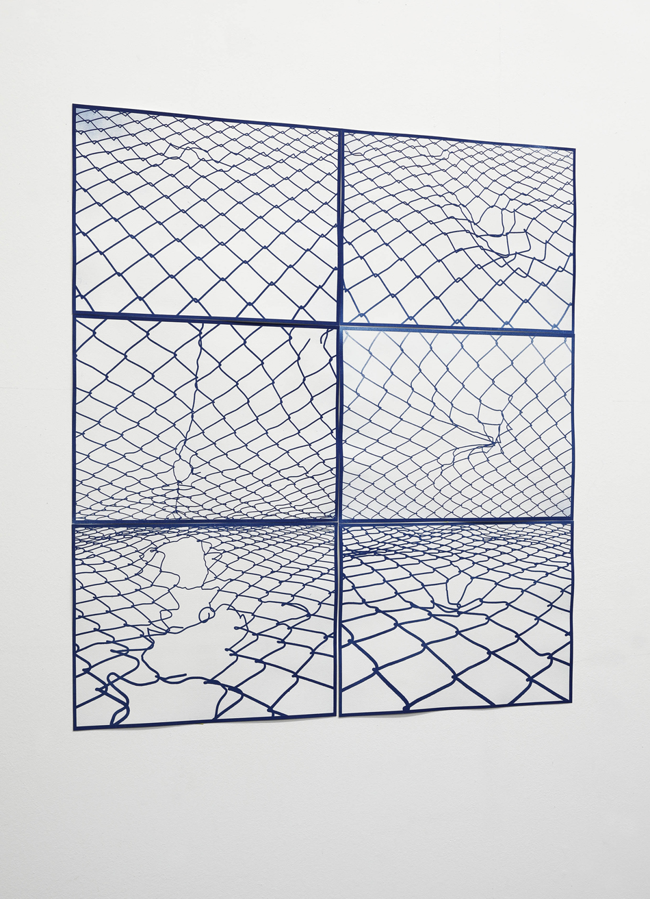 Gravitation ist aus der reinen Beobachtung entstanden. Eine Alte Umzäunung die über Jahre hinweg der klaren Abgrenzung gedient hat, wandelt sich in seiner Arbeit zu einer grafischen Darstellung. Die Grafik ermöglicht es sowohl einen Blick ins fast Unendliche als auch in die klare Abgrenzung vom Davor und Dahinter. Die Eingriffe des Menschen, sind die spannenden Elemente in dieser Grafik. Durch die Untersicht und das Verdrehen und Zusammenfügen der einzelnen Bildmotive zu einem Bild verliert sich der Betrachter in der unwirklichen Landschaft.